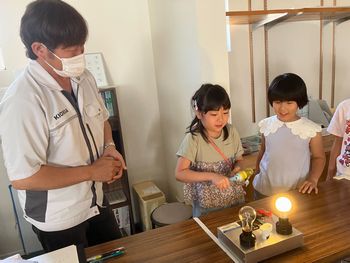 地元企業であるキオクシア株式会社様による「出前講座」を行いました。 半導体や地球温暖化について学んだ後、家庭でできる省エネ作戦を考えたり、 手回し発電機による実験(白熱灯・蛍光灯・LEDでどれが省エネに優れているか)、 VRによる工場見学を行いました。 社員の皆様ありがとうございました!伊勢新聞様、中日新聞様にも取材をいただきました。 伊勢新聞 自分たちにできる地球温暖化対策は? 朝日学童保育所でキオクシア社員出前授業 中日新聞 地球温暖化防ぐには キオクシア四日市工場、朝日の児童に出前授業
