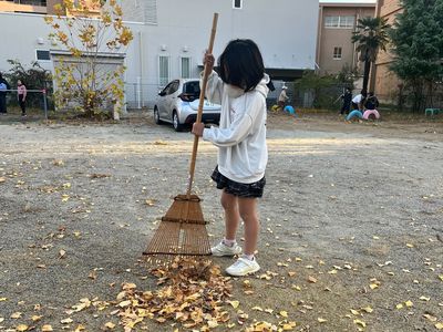 園庭の落ち葉を掃き掃除している支援員の姿を見て、子供たちが「手伝う!」と次々に集まってきました。 声をかけたわけではなく、自分たちから進んで行動してくれたことに、支援員も思わず笑顔に。 最後は、集めた落ち葉を支援員チームと子供たちチームで、どちらが多くごみ袋に入れられるかの 落ち葉入れ競争に発展し、大盛り上がりでした。 ちょっとした掃除の時間が、子供たちの自主性や協力する力を感じる、温かいひとときになりました。
