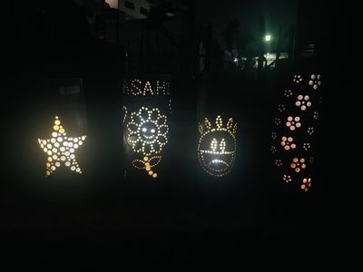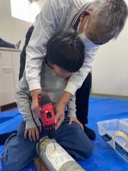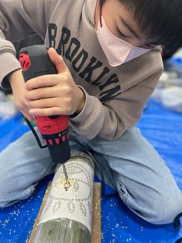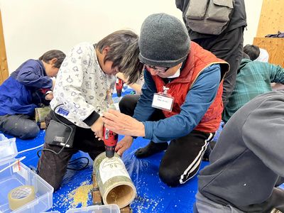 朝日町のふるさと納税返礼品にも採用されている「竹あかり」。 地元の竹細工サークルの皆さまにご指導いただき竹あかりづくりを体験しました。 ドリルに触れること自体が初めてという児童も多く、最初は苦戦する様子も見られましたが、 徐々に慣れ、最終的には全員が見事に完成させることができました。 当日はCCNet様にも取材にお越しいただきました。 普段テレビで見ているお兄さんと一緒に 少し緊張しながらも、笑顔あふれる時間となりました。 完成した竹あかりは、学童にてライトアップも行い、幻想的なひとときを過ごしました。 地元の伝統に触れ、地域の方々と交流しながらものづくりを体験できた、心に残る一日となりました