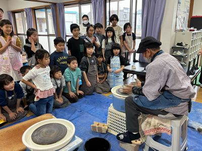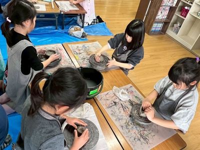 岐阜県から講師の先生をお招きし思い思いの器やキーホルダーを作りました。 焼き上がりが楽しみです。