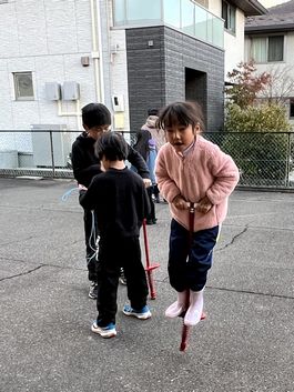 早朝には雪が降り、天気予報では「今日は極寒です」と伝えられたこの日、 それでも子どもたちは元気いっぱい、外遊びを楽しんでいました。