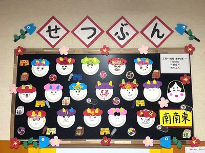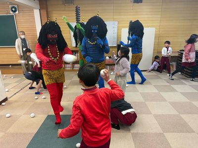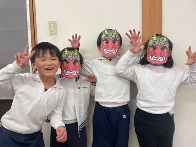 2月3日は節分。 各学童で、それぞれに楽しい時間を過ごしました。 おやつに、恵方巻に見立てた細長いロールケーキを味わった学童。 子どもたちがお面をつけ、かわいい鬼がたくさん登場した学童。 本格的な鬼が現れ、少し涙目になりながらも頑張って豆まきをした学童。 それぞれの学童で、個性あふれる節分の一日となりました。 節分は、「季節の変わり目に邪気を払い、無病息災を願う」日本の伝統行事です。 子どもたちにとっても、日本の文化や行事に親しみながら、楽しい思い出となってくれていたらうれしく思います。